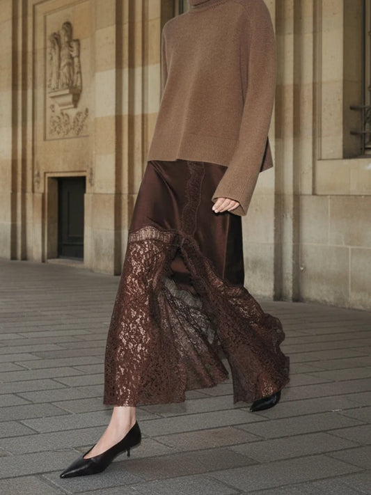 Brown Lace Long Skirts