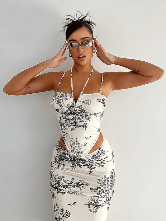 Pucci Skirt Shorts Sets Women 3 Pieces Backless