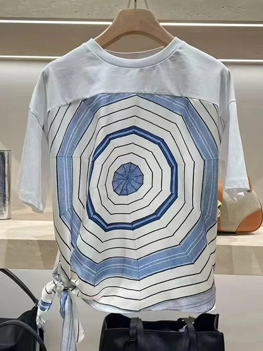 Loose Long Flared Pants Geometric Printing Suit 2025 Summer