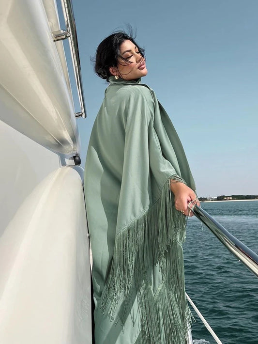 RAmadan Silk Tassel Dress Morocco Kaftan Jalabiya
