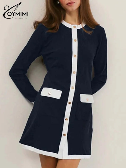 Oymimi Elegant Blue Patchwork MINI Dresses