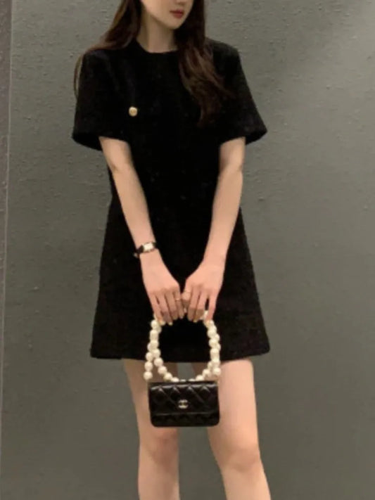 TWOTWINSTYLE Solid Slimming Spliced Pearl Dresses for Women Square Neck Sleeveless Patchwork Hollow Out Tunic Dress Female New