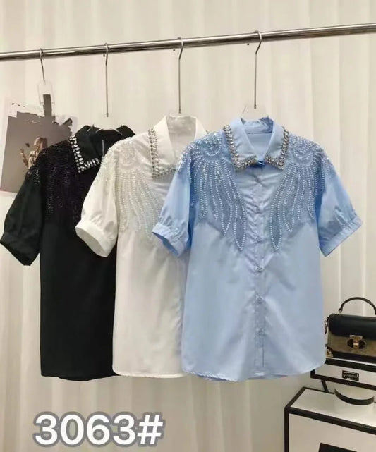 The Royals Collection-Luxury Style Sparkle Rhinestones Embellished Shirt