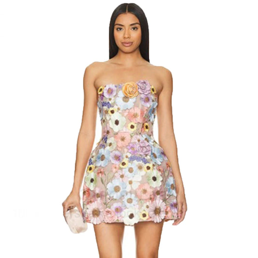 1 Mini 3D Flower Ruched Dress