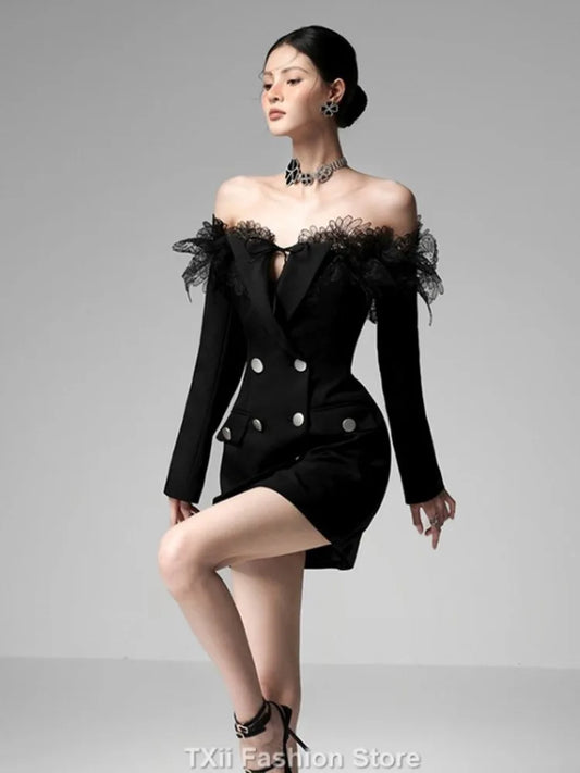 Party Embellished Black White Blazer Jacket Dress High Quality Premium