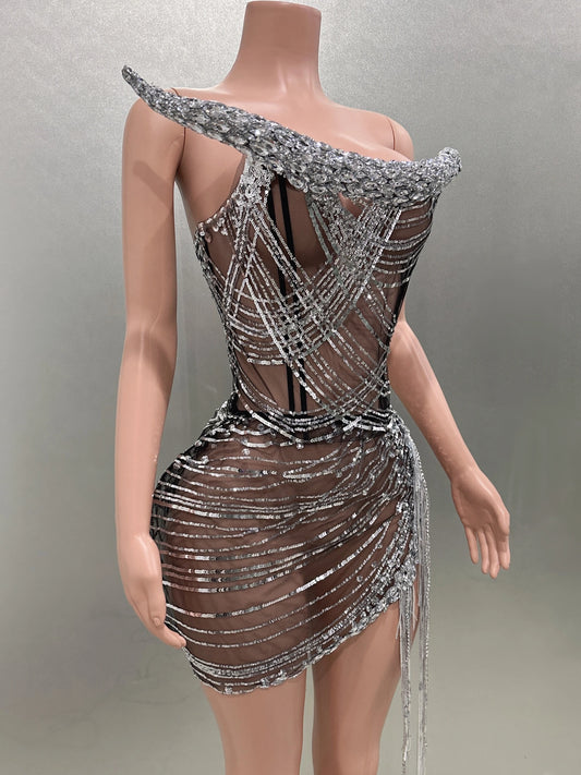 Sexy Vestidos Mesh Shiny Bodycon Mini Dress