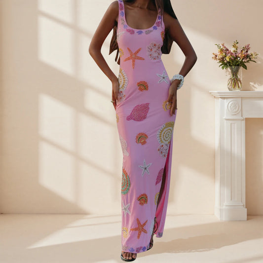 Paradise Graffiti Print Linen Dress