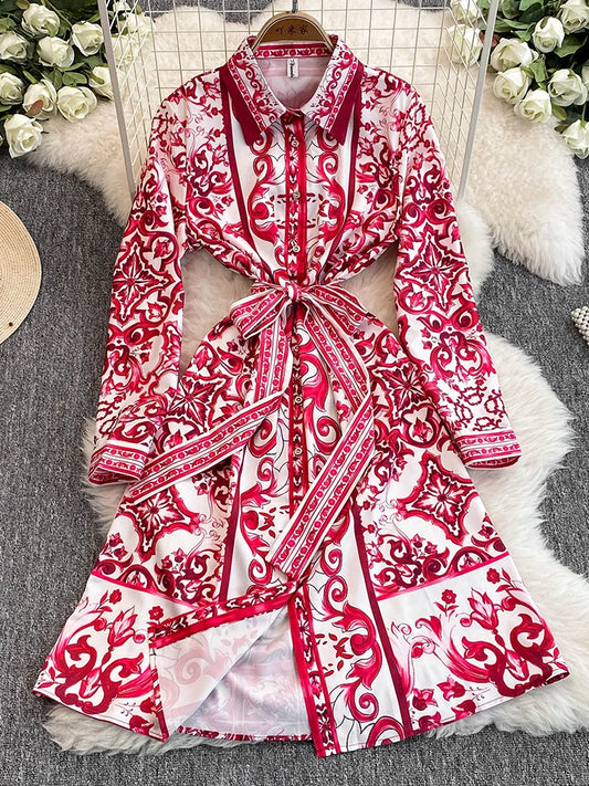 Spring Retro Blue White Red Dolce Dress