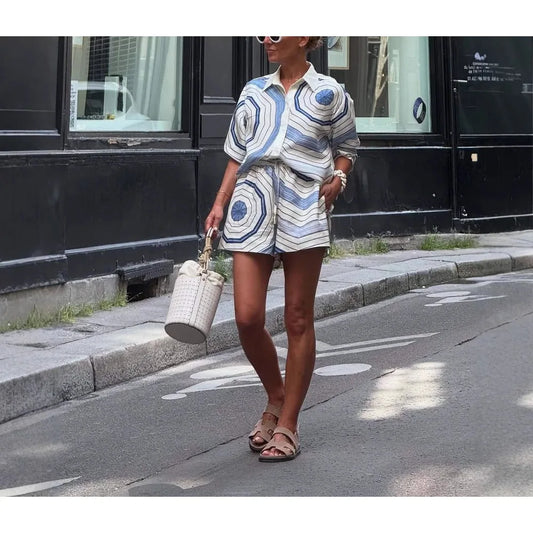 1 Linen Shirt Shorts Set
