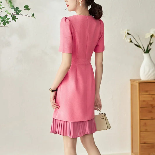 French Contrasting Color Patchwork Dress