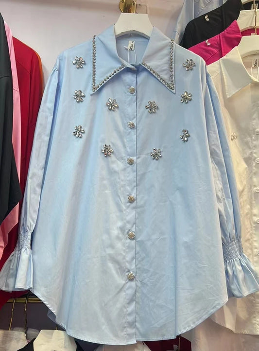 Mit Kristallen verzierte Baumwollblusen im Luxusstil