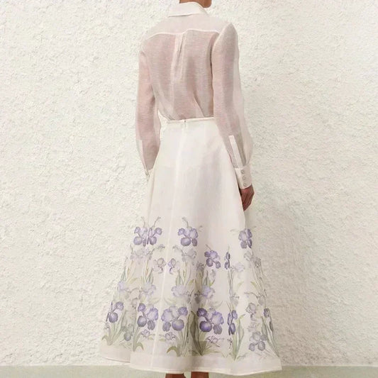 AusverkauftLeinen-Seiden-Rock-Set in Weiß mit Blumenmuster