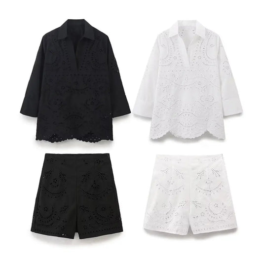 Lace net Shirt and Shorts Set
