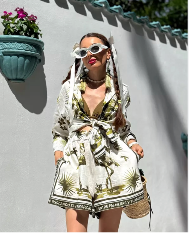 Model Number: Casual Print Shirts Shorts Sets Women