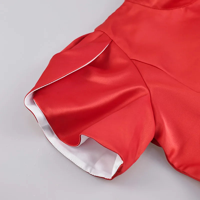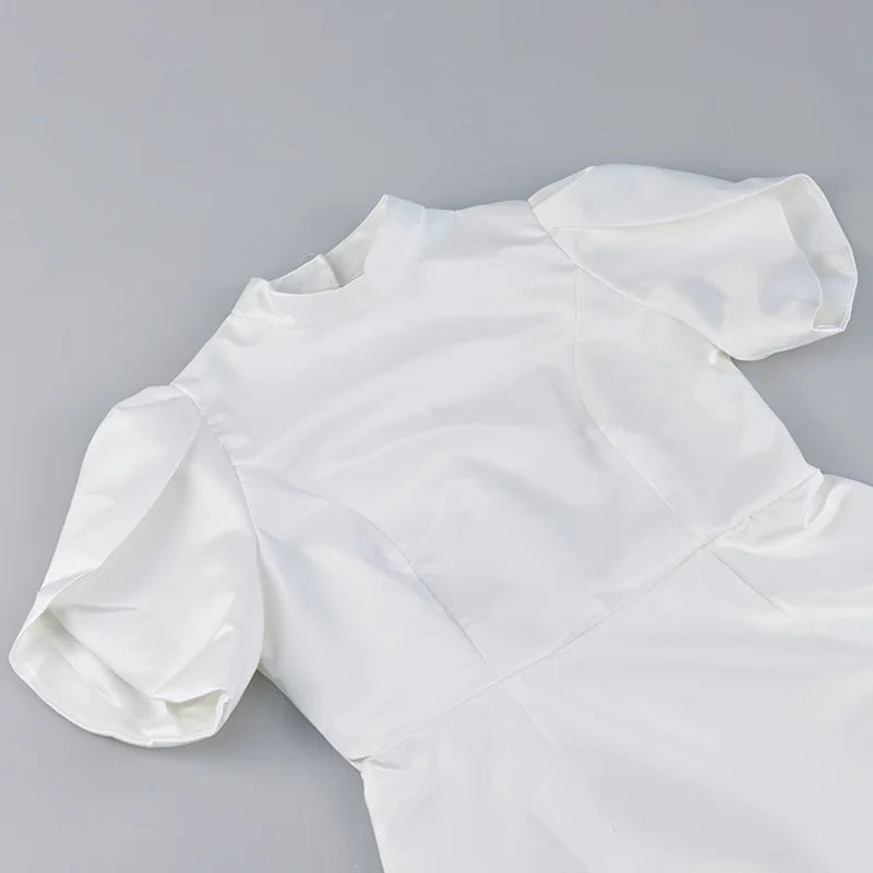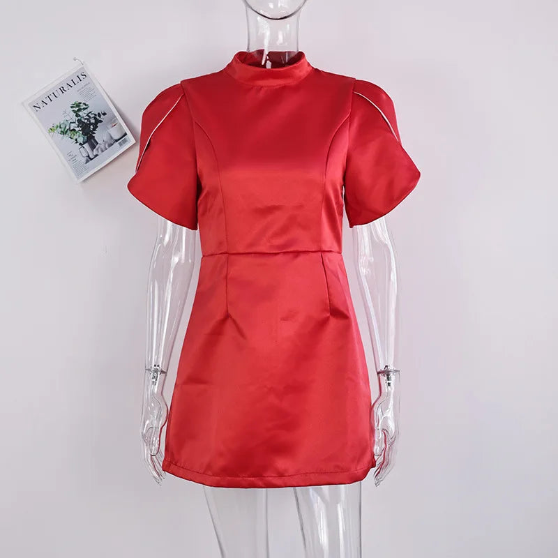 Elegant Bow Hollow Out Mini Dress Women Red Short Sleeve Sexy A-line Dresses Female 2025 Fashion Party Evening Robe White Black