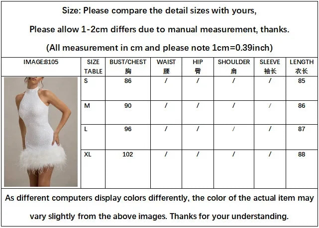 Model Number: Elegant Feather Patchwork Sequin Halter Dress