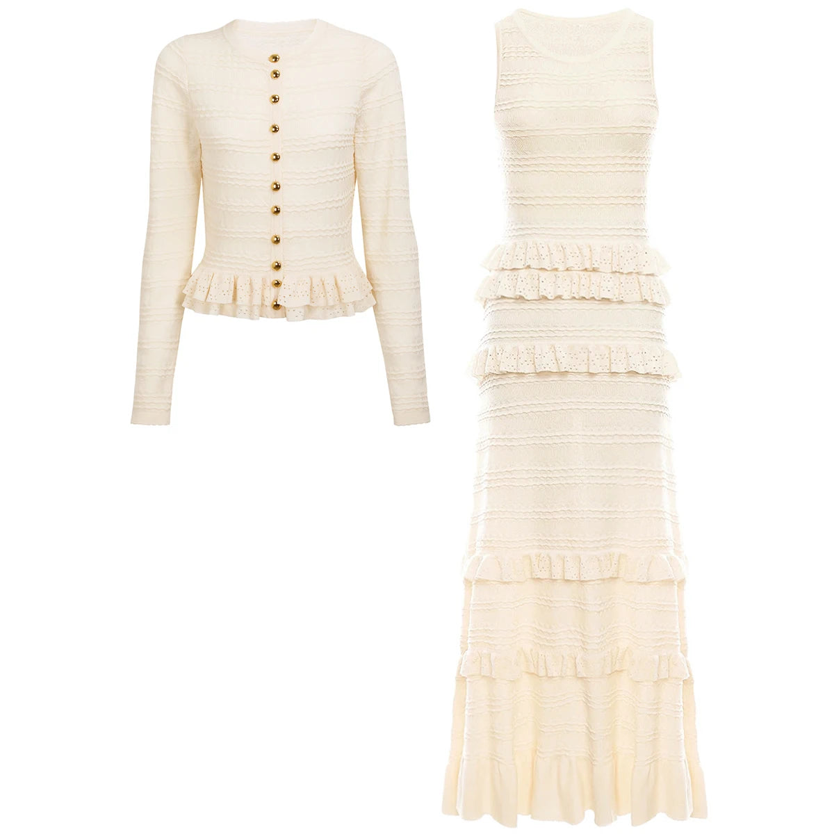 High Quality New Sweater Fashion Classic Ruffle Edge Knitted Elastic Long Sleeved Cardigan Sleeveless Skirt Slim Fit Women's Set