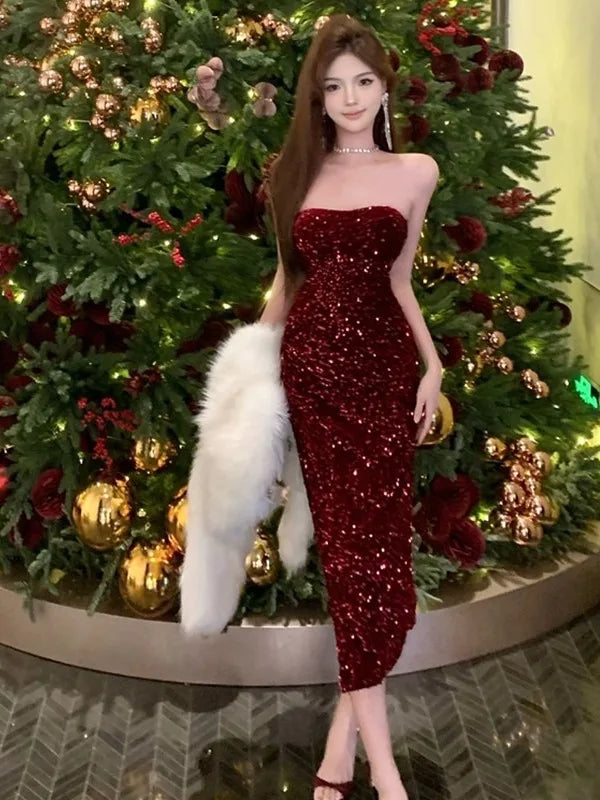Velvet Sequin Bridesmaid Dr Sexy Wrap Bodycon High Slit Svel Materni Gown for Women in Their Prime