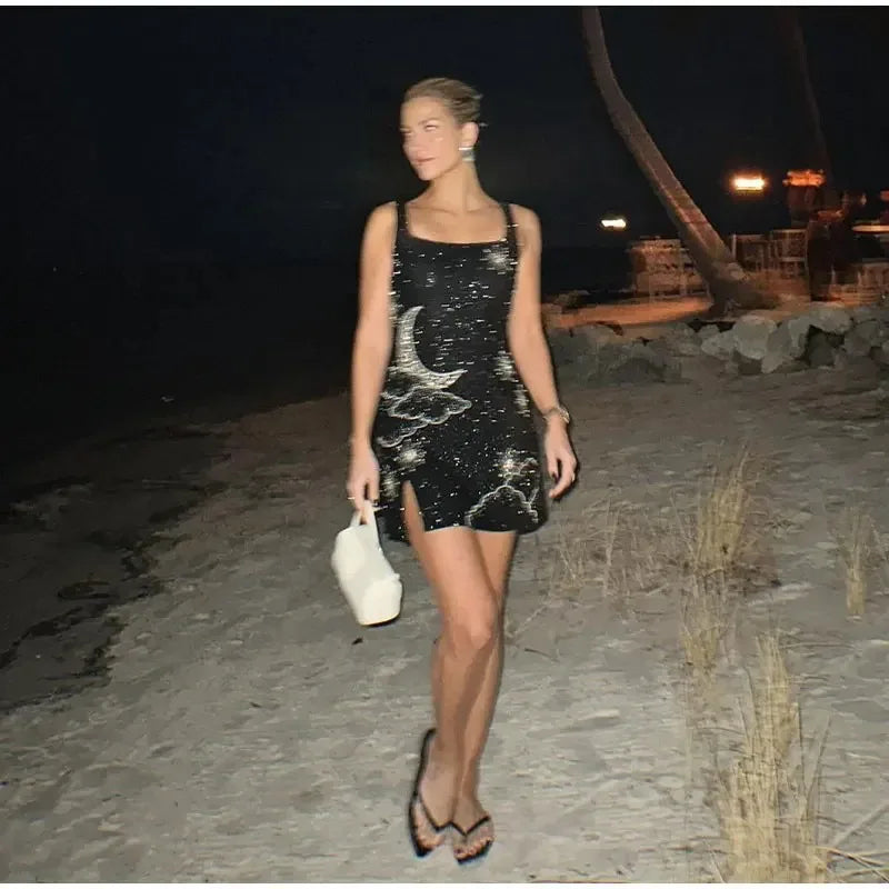 Fashion U-neck Sleeveless Splited Mini Dresses 2025 Lady Party Club Vestido