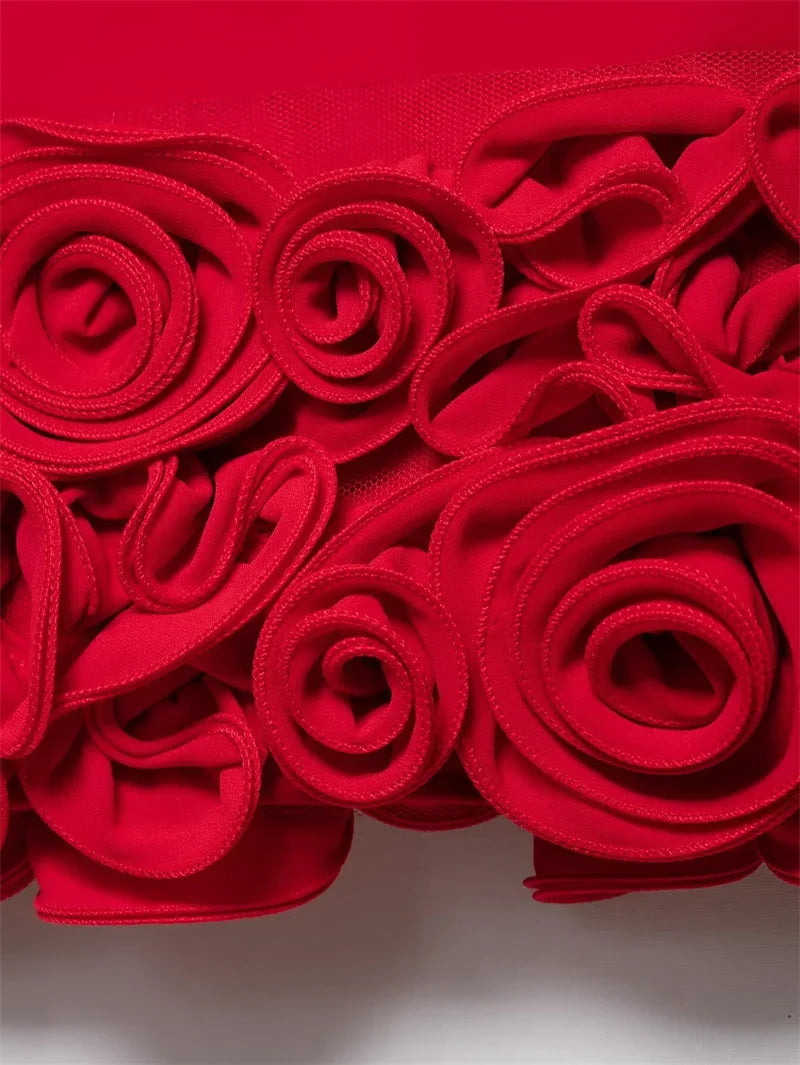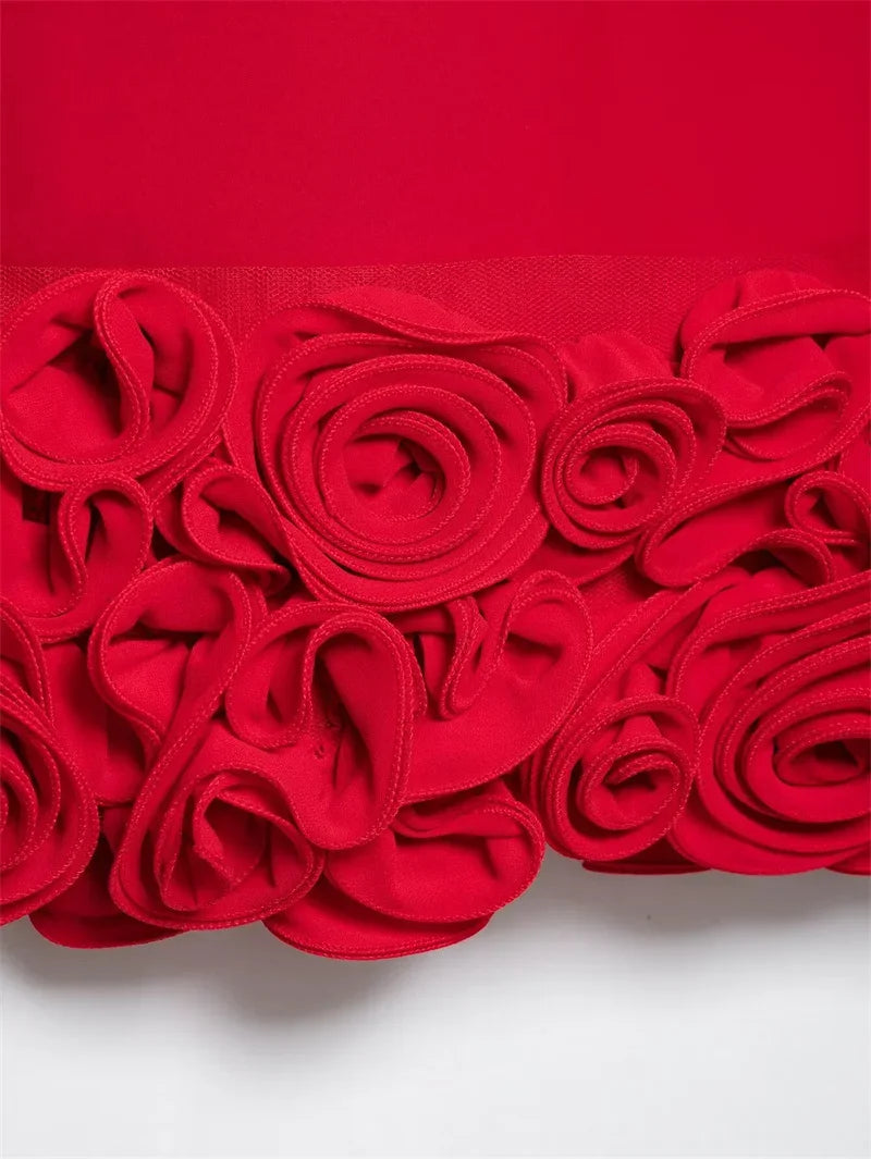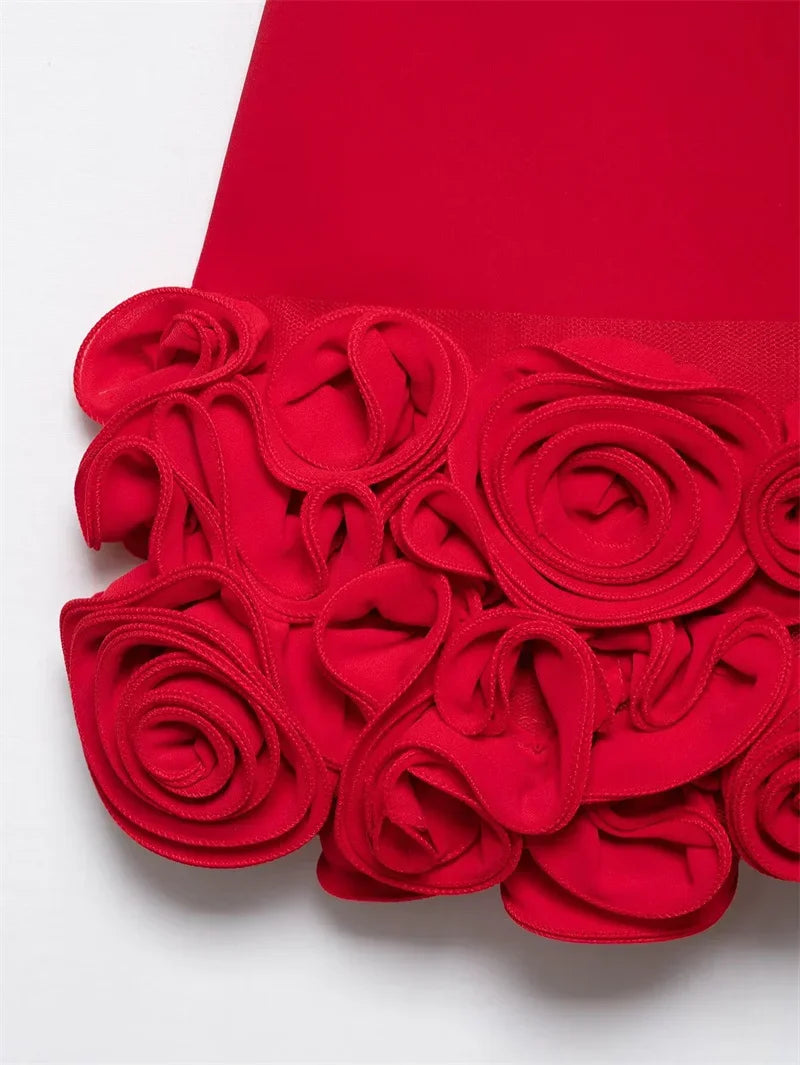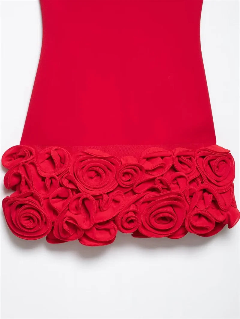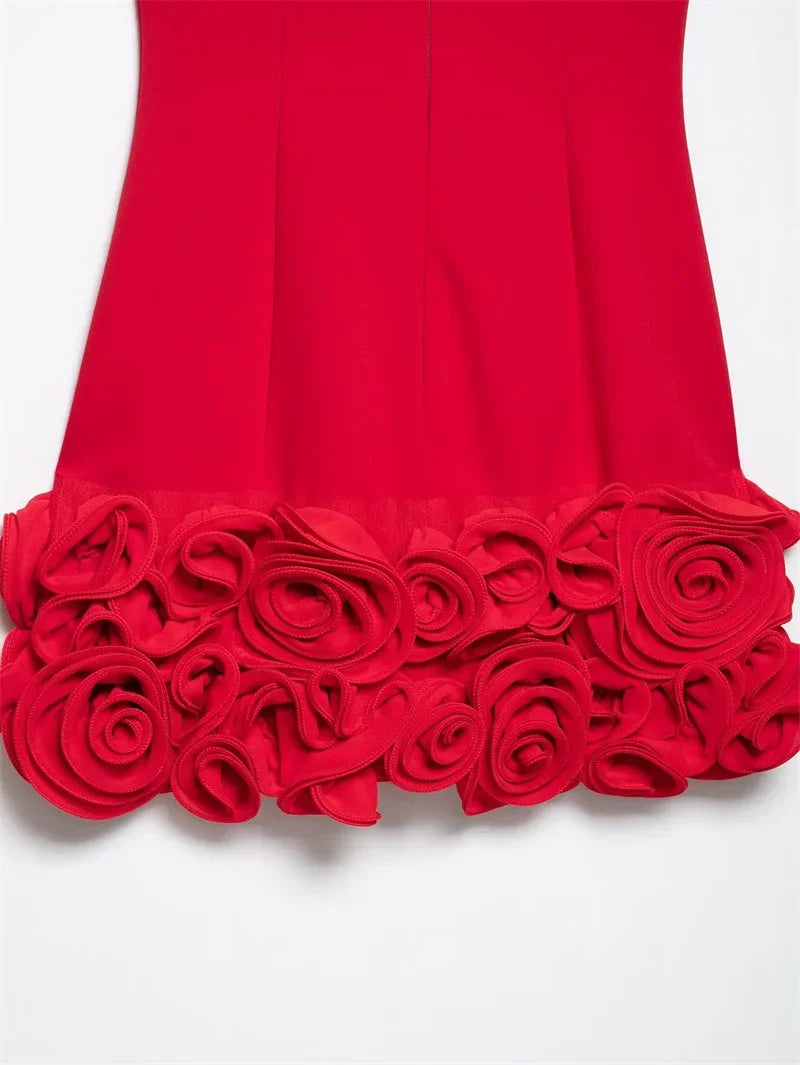 Women's Dress New Summer Red Suspender Mini Dress Three-dimensional flower decoration design Fashionable and sexy Personal