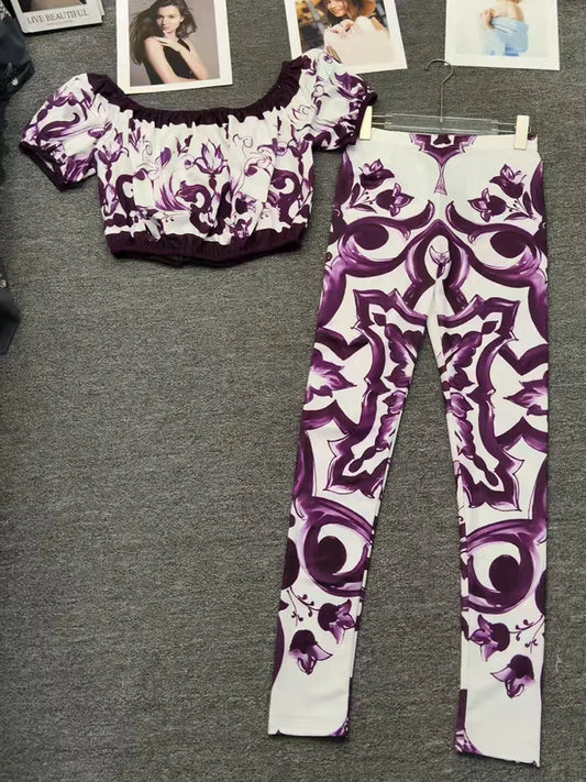 1 Sexy Print TOP & Ruffle Mini Skirt Set