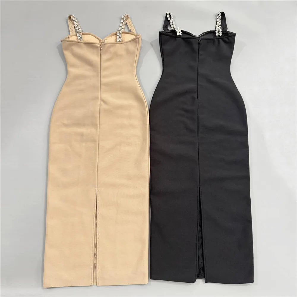 2025 New Arrival Luxury Beading Bandages Dress Sexy Spaghetti Strap Clothes Club Party Evening Midi Dresses