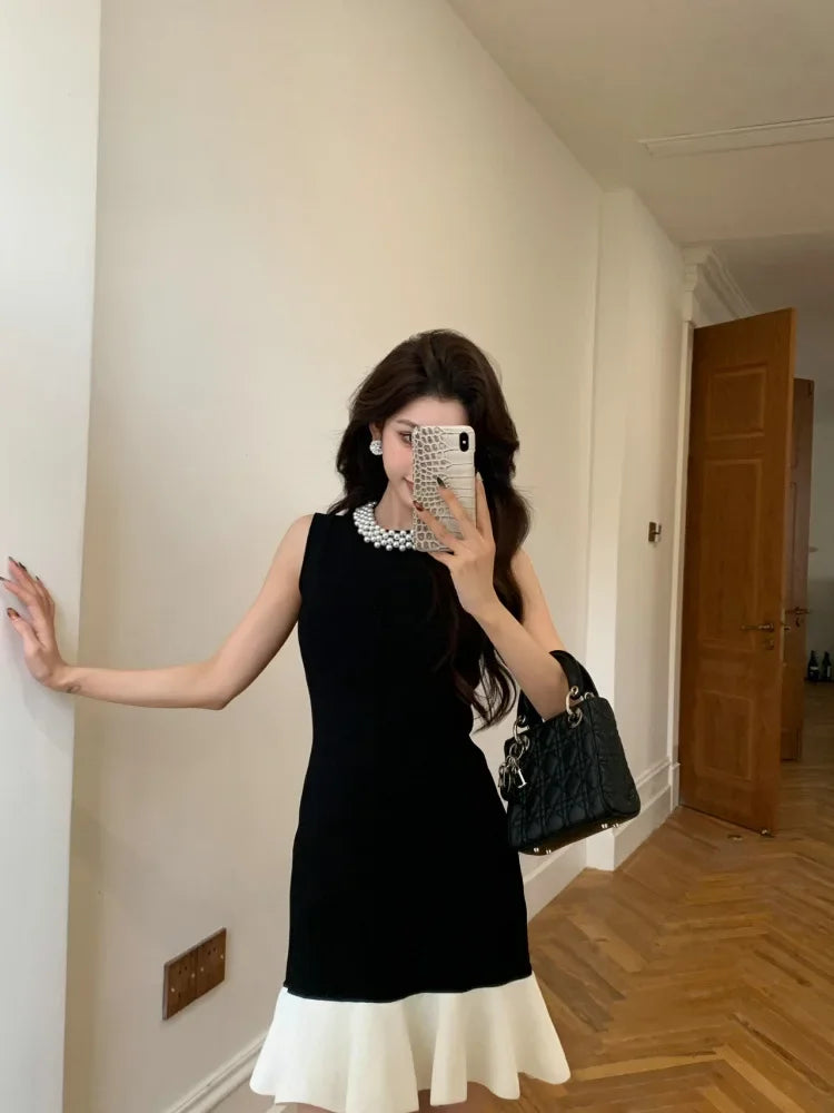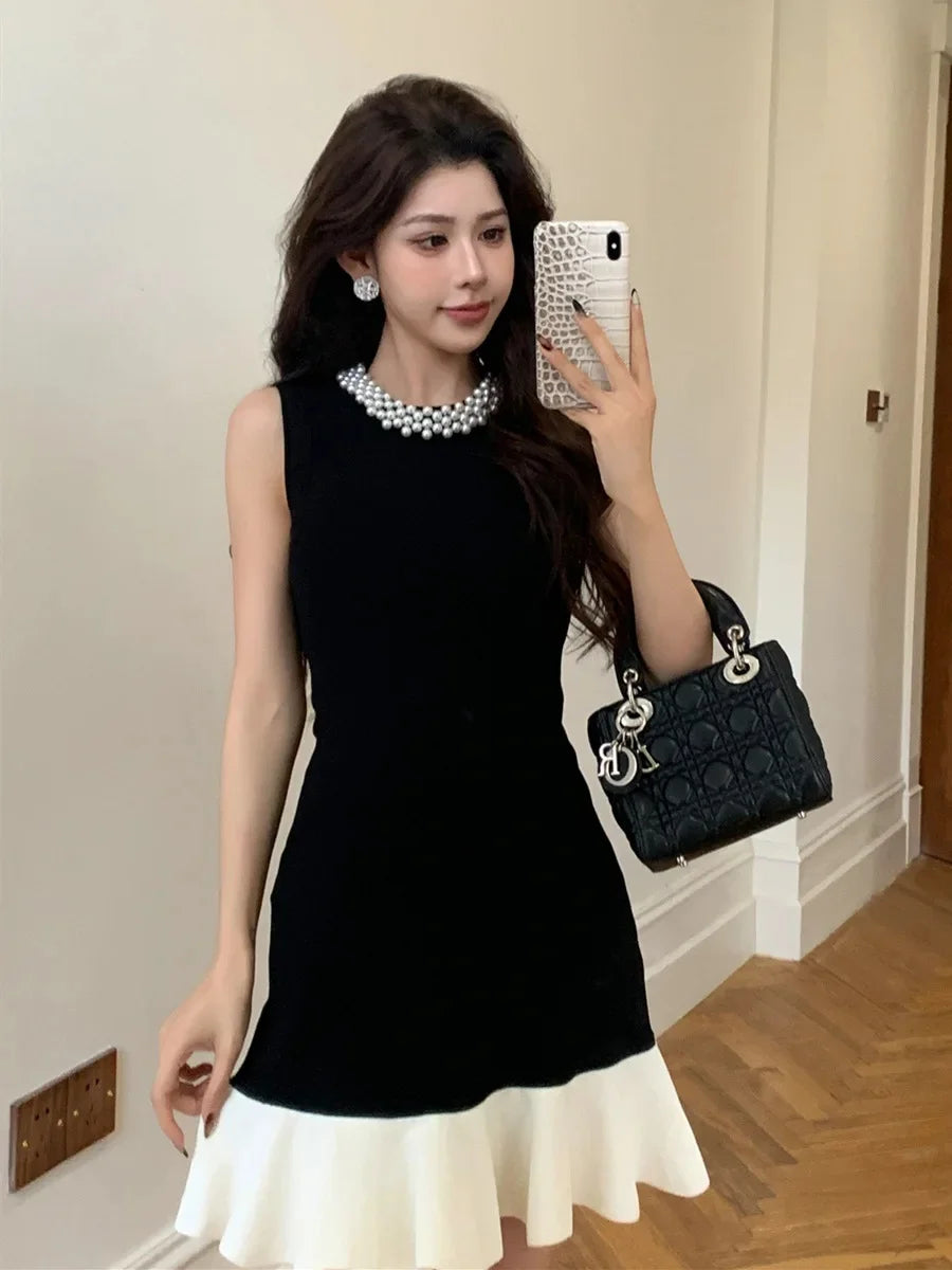 https://shellsscollection.com/fr/products/elegant-pearl-detail-knitted-ice-silk-sleeveless-a-line-dress-french-style-summer-dress-for-women-with-lace-hem-empire-waist