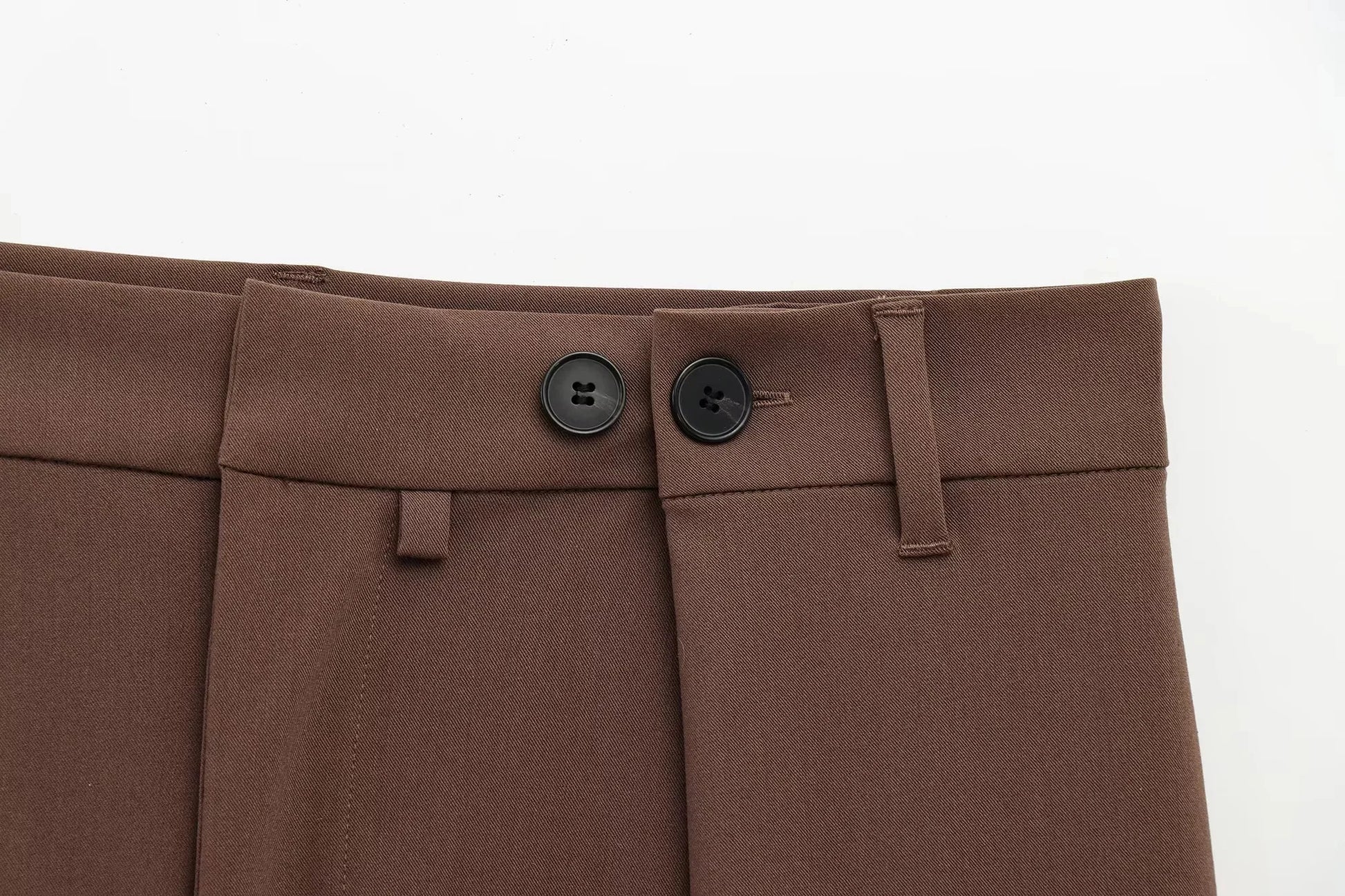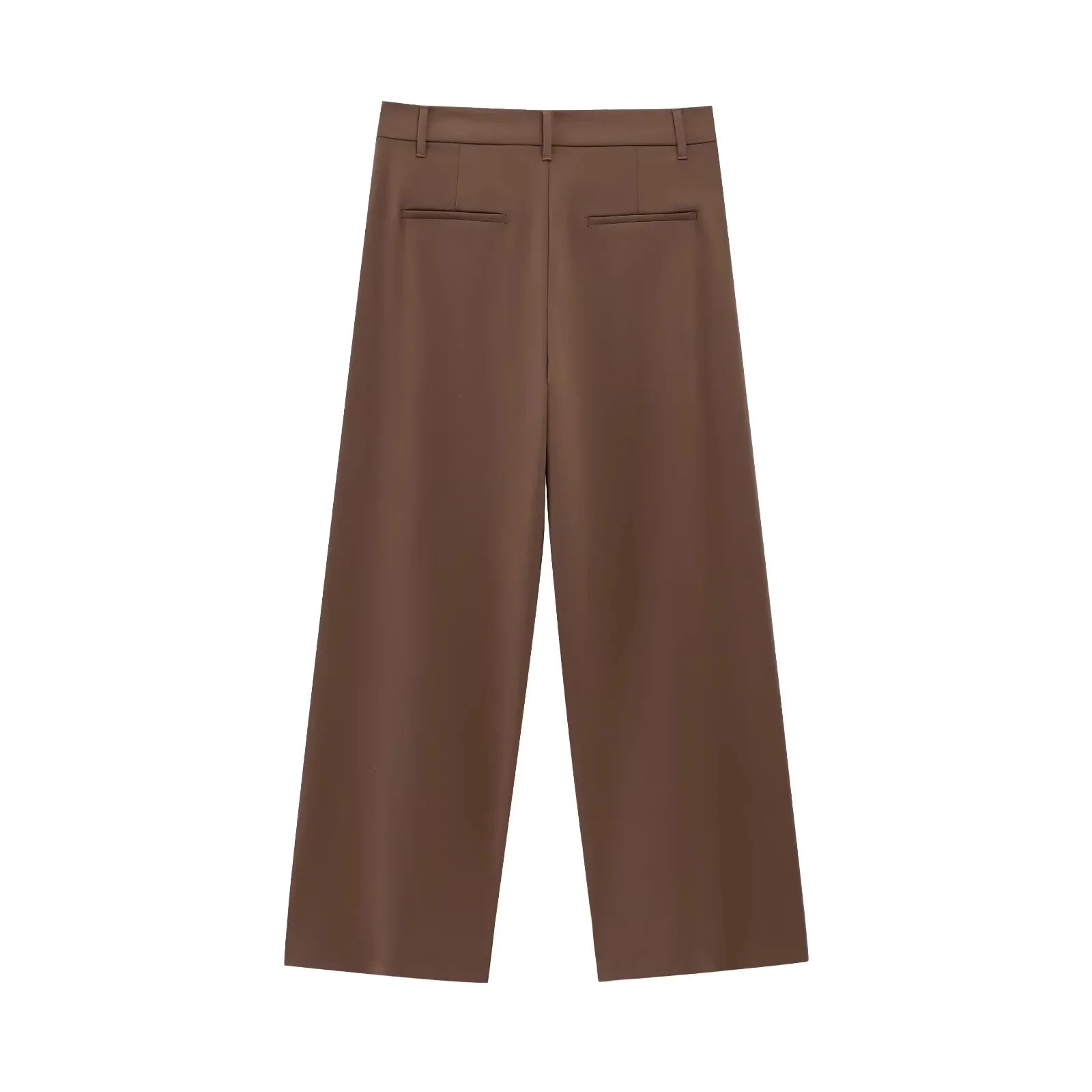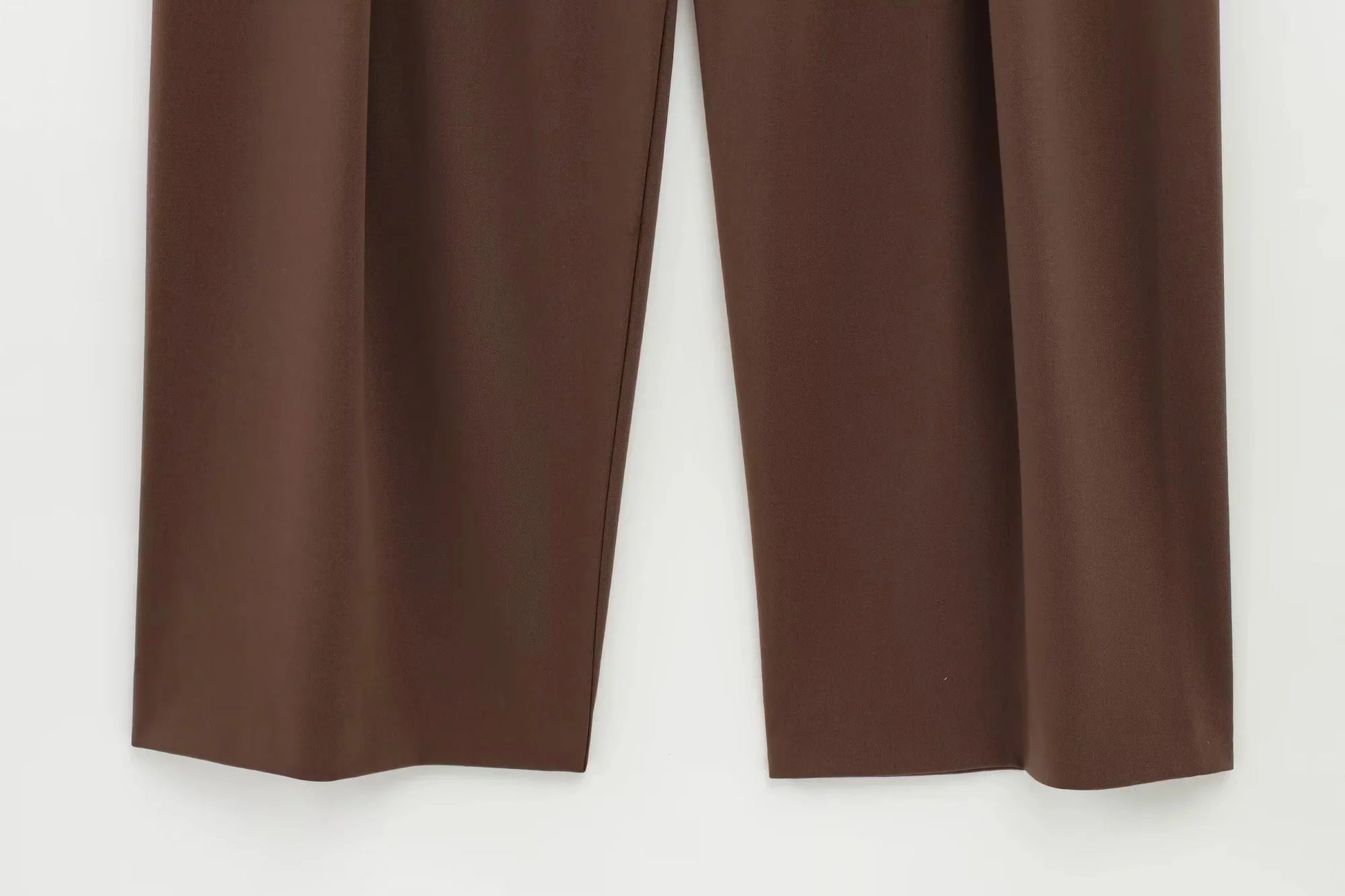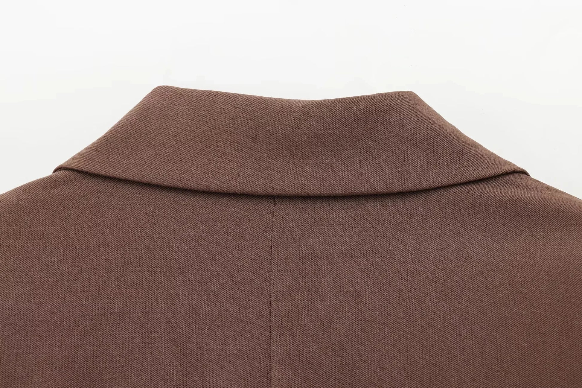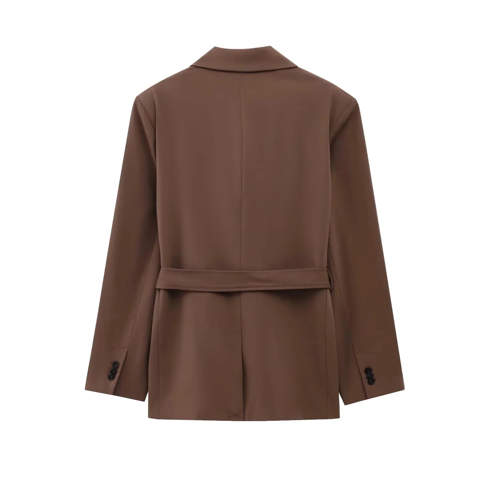 KONDALA 2025 Fall Winter Office Lady Elegant Brown Women Suit Fashion Casual Sashes Oversized Shrug Blazer Chic Zipper Long Pant