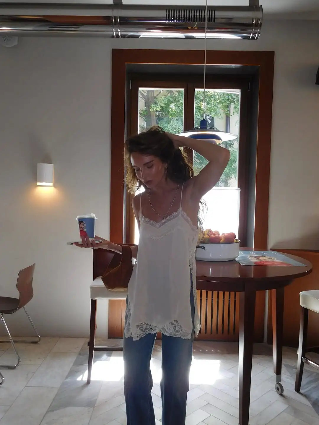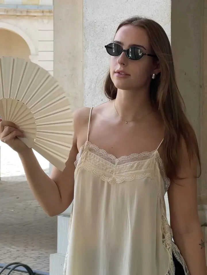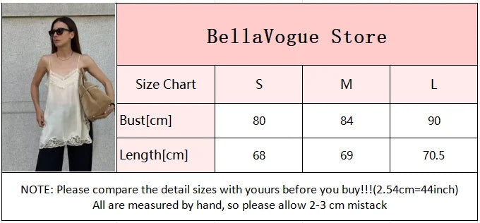 Lace Patchwork Sling Top Women Sexy V-neck Sleeveless Side Split Solid Color Vest 2025 New Summer Lady Party Vacation Tops