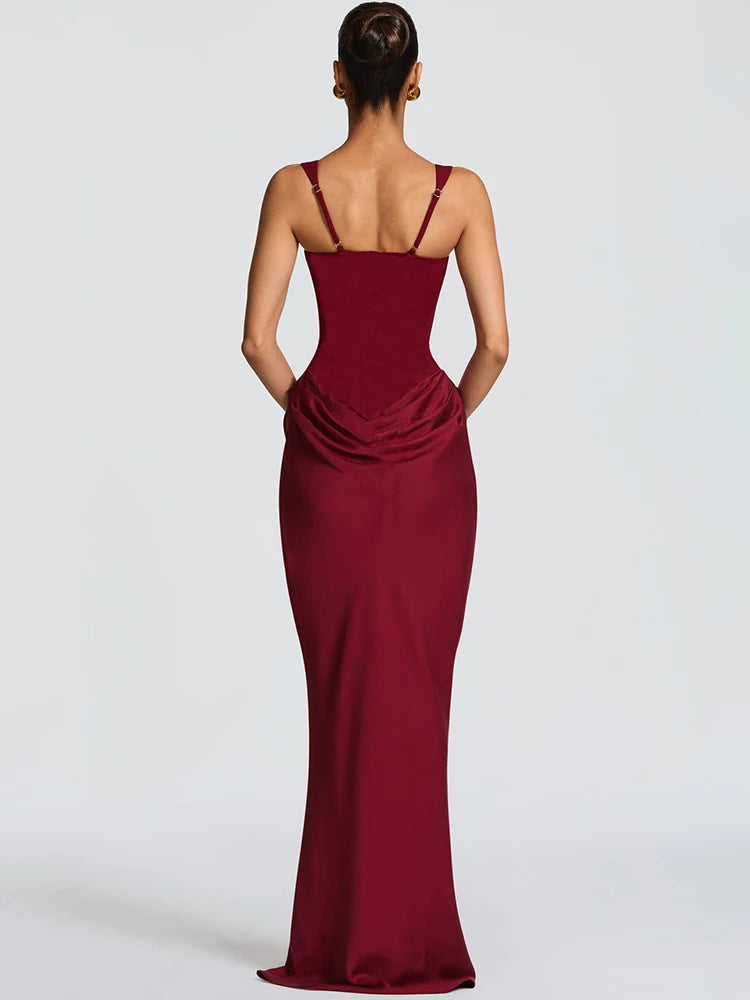 Elegant Backless Sexy Maxi Dress Women Gown Fashion Square Collar Sleeveless Skinny Ruched Club Party Long Dresses