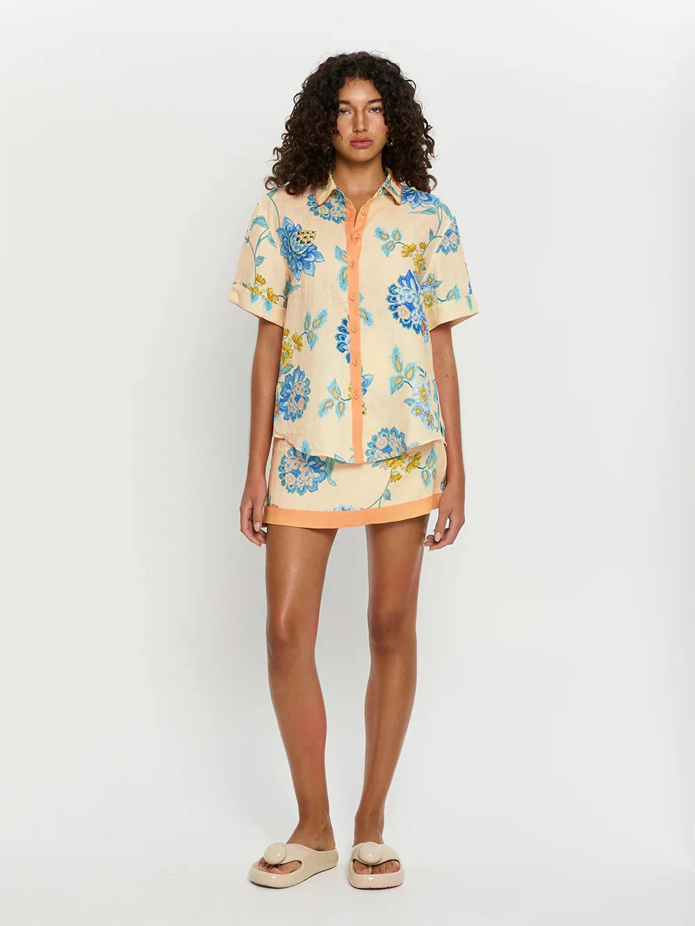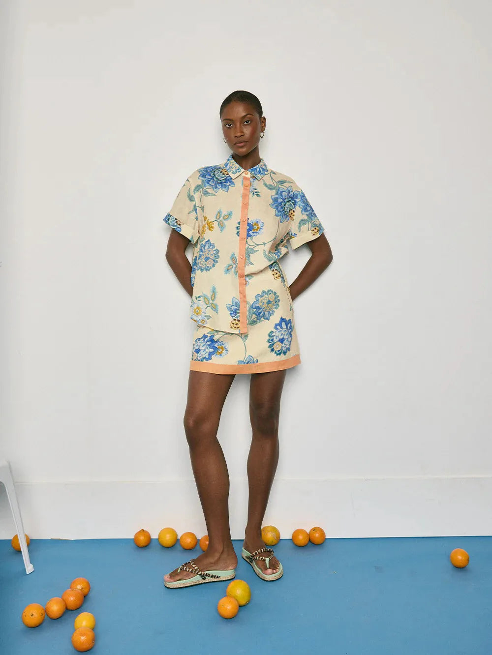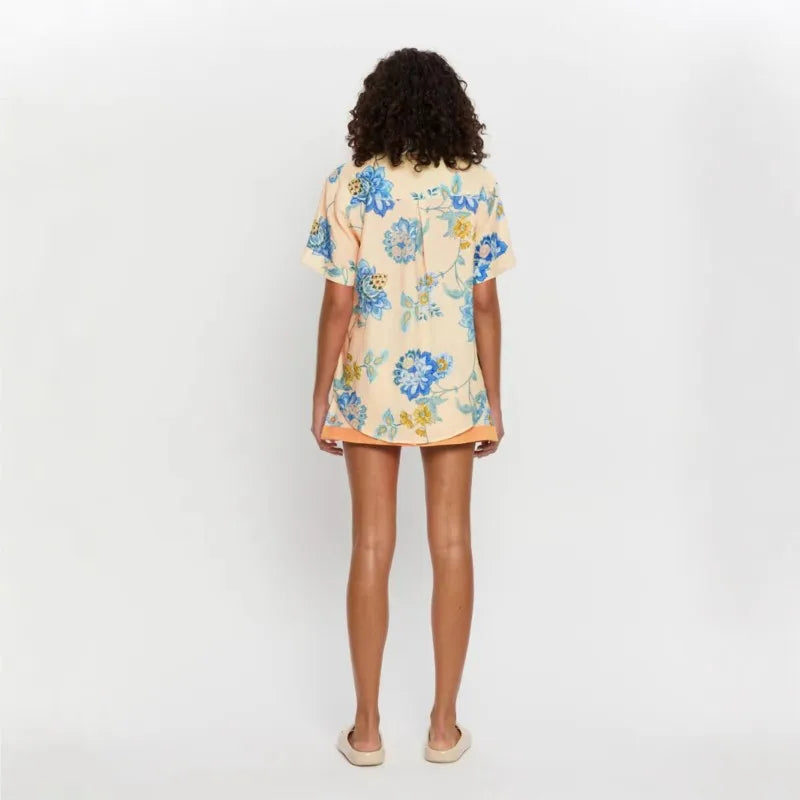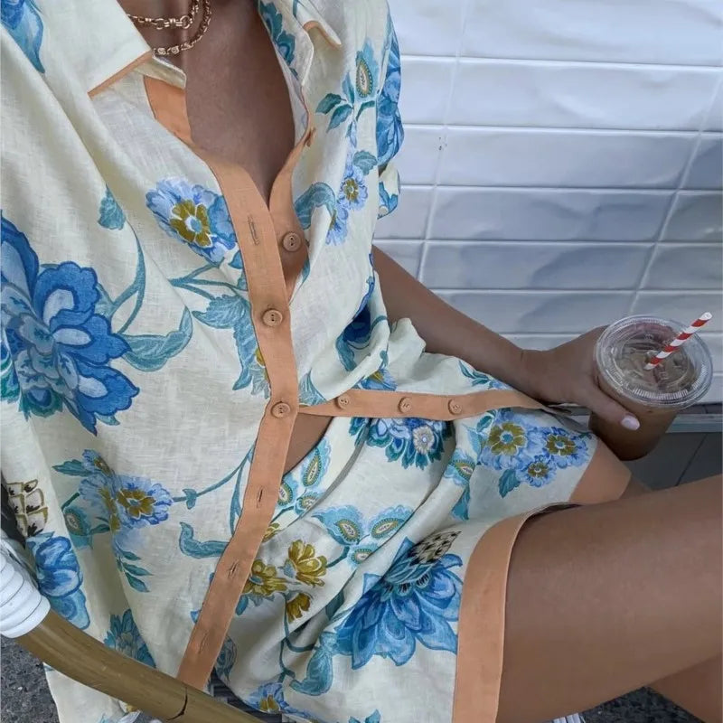 Loose Print Women 2 Piece Set Outfit 2025 Vintage Short Sleeve Shirt With High Waist Mini Skirt Set Streetwear