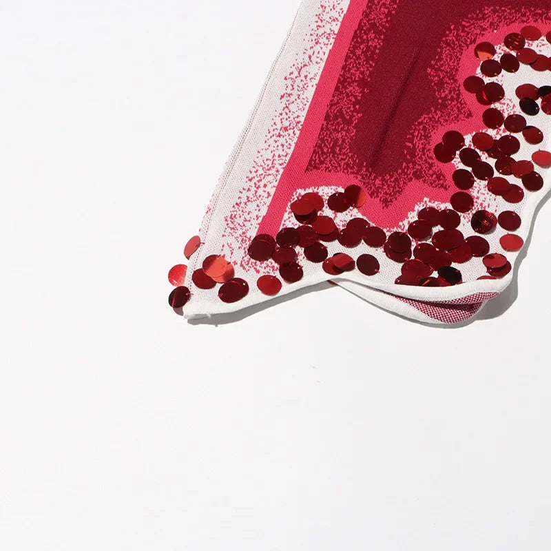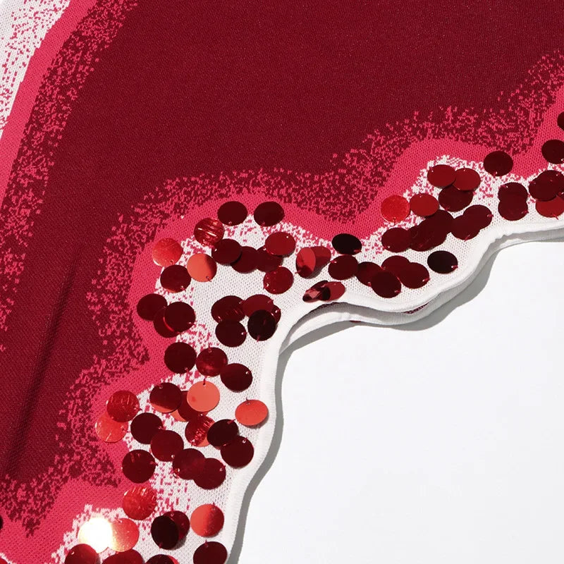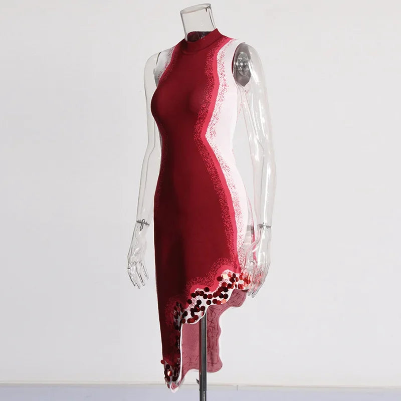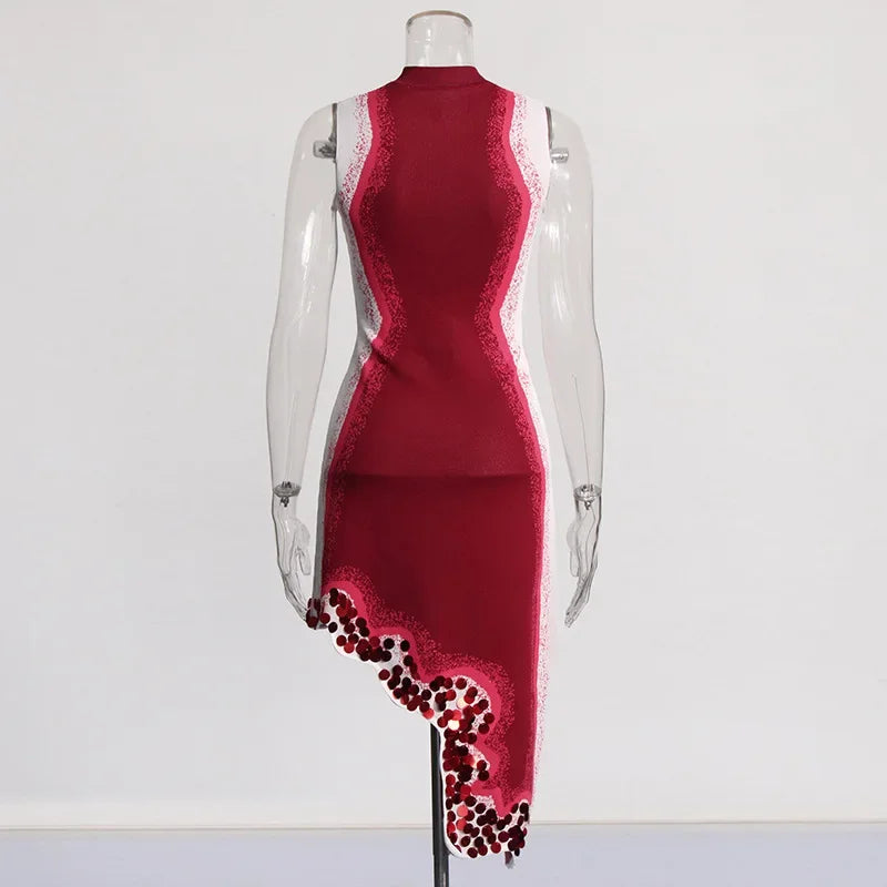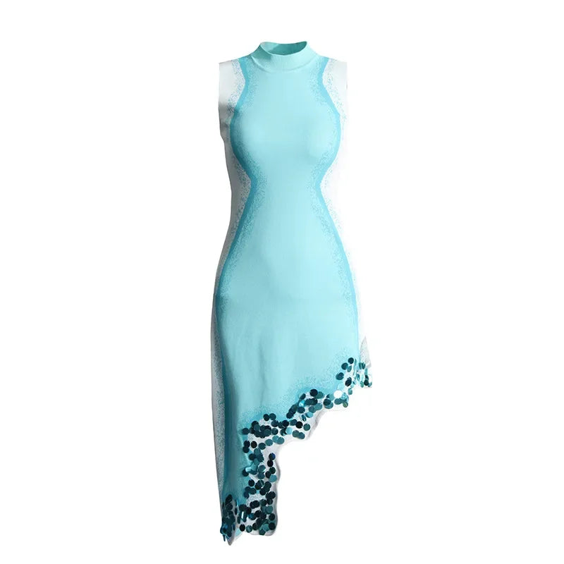 2025 New Gradient Sequin Splice Irregular Mid-Length Sleeveless Dress Fashionable Wave Edge Design Ankle-Length Empire Waist