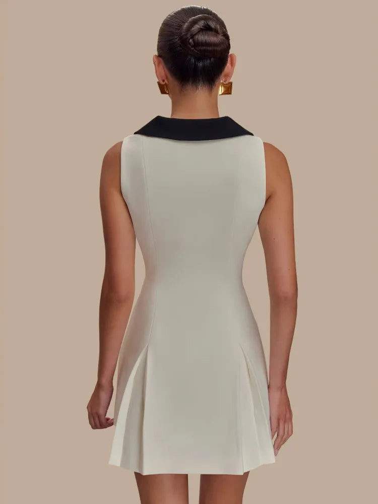DressesFor Women Sleeveless High Waist Slim Patchwork Pleated Zipper A-line Club Party Dress