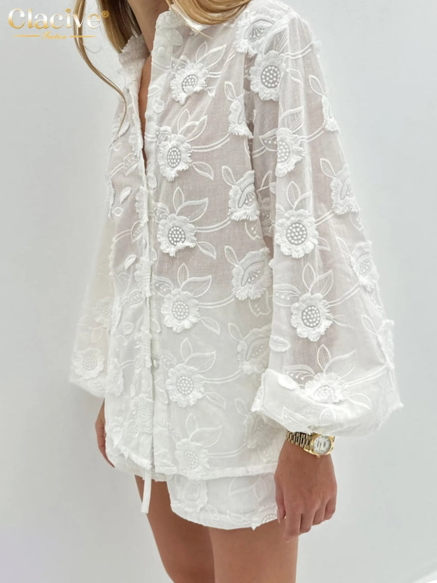 Women Outfit Elegant Long Sleeve Shirt With High Waist Shorts Set Female Streetwear