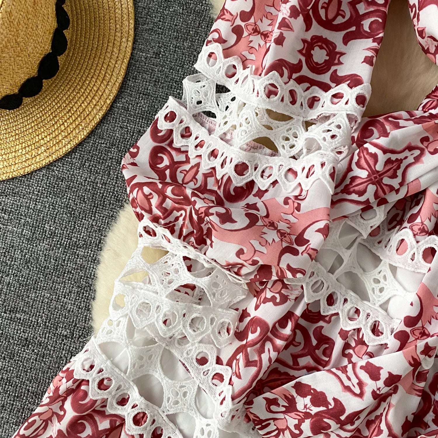 Print Bandage Dress A-line Chic Casual Beach Vacation Women Summer Vestidos dresses