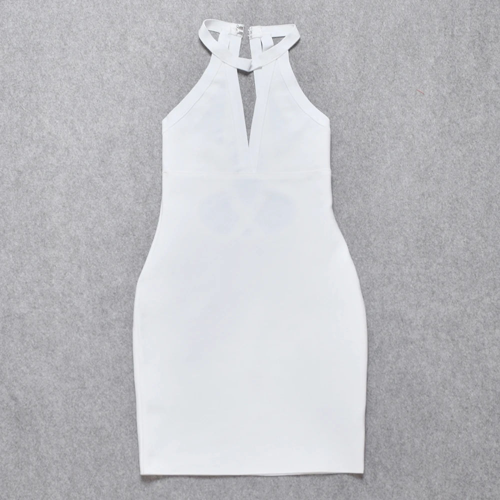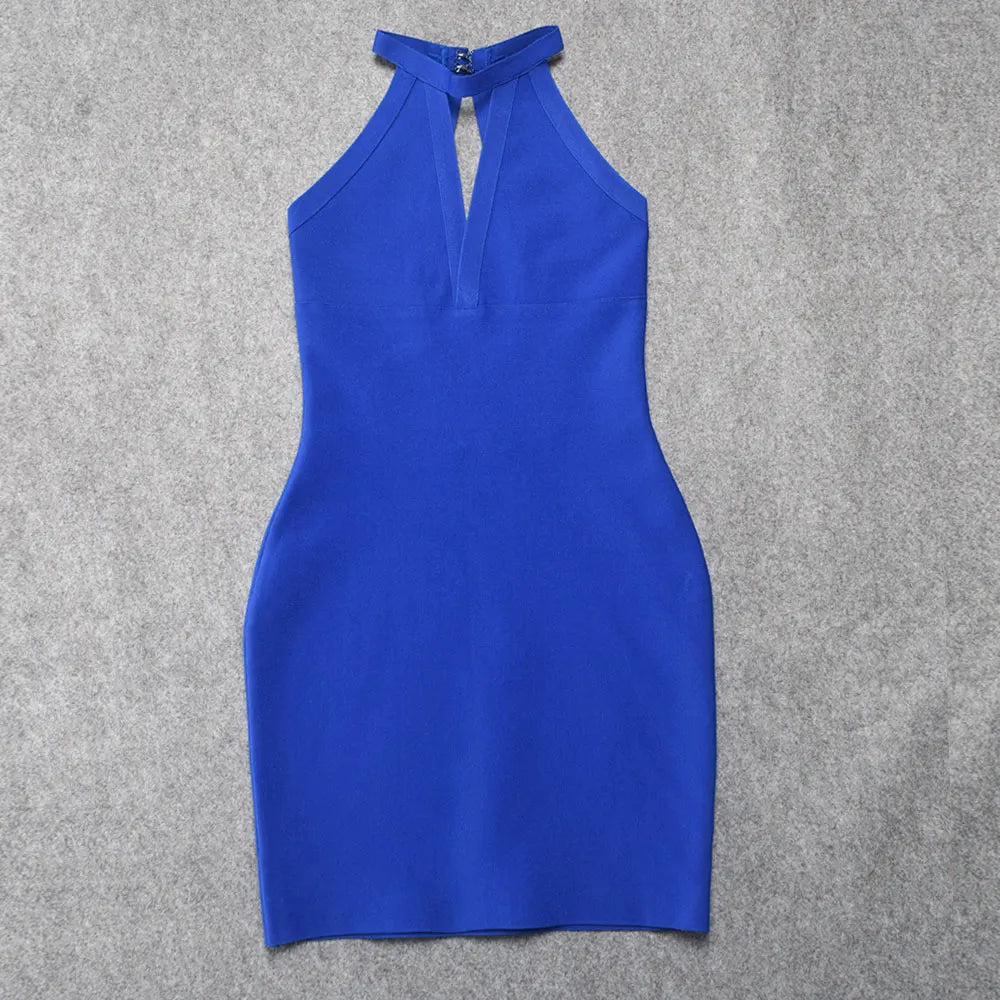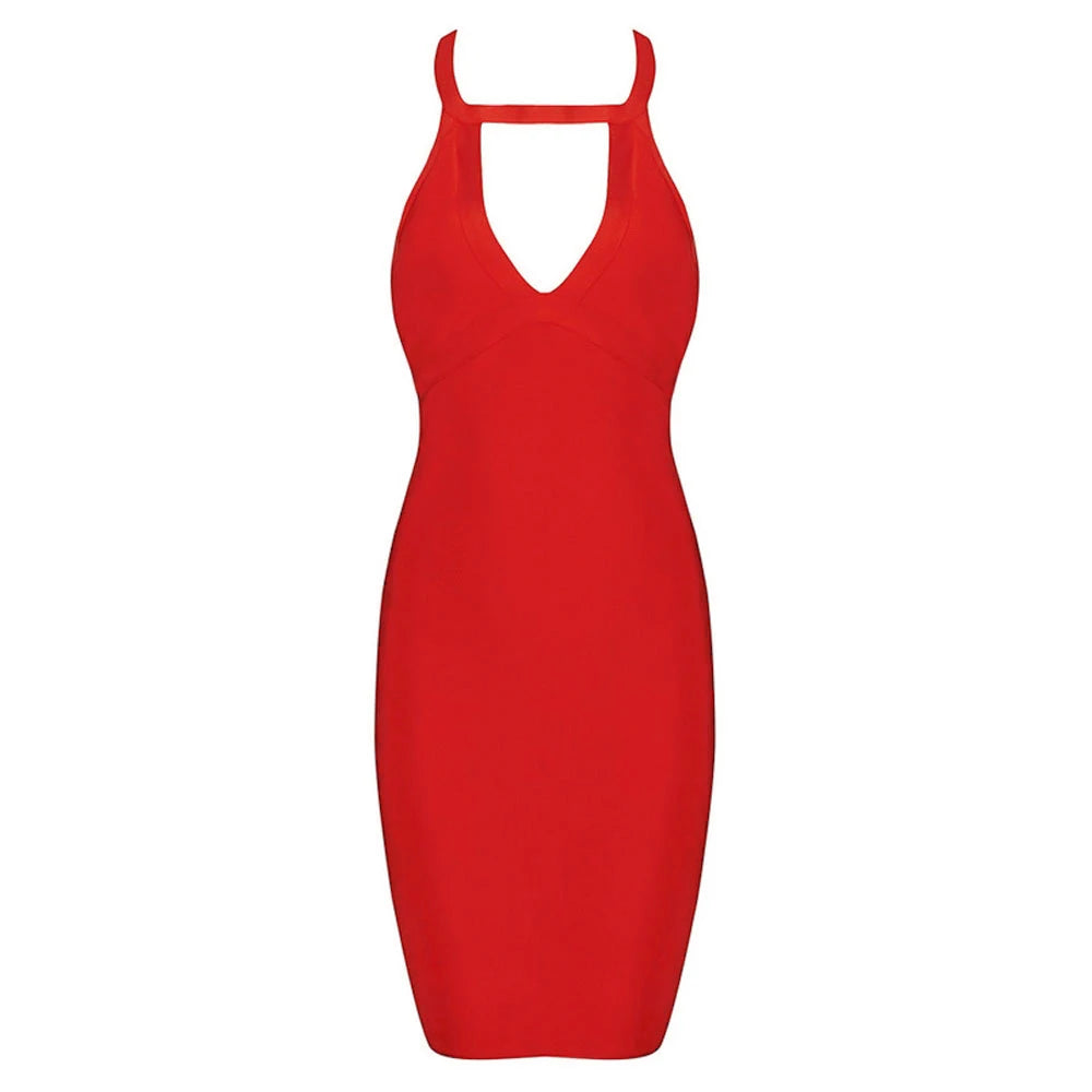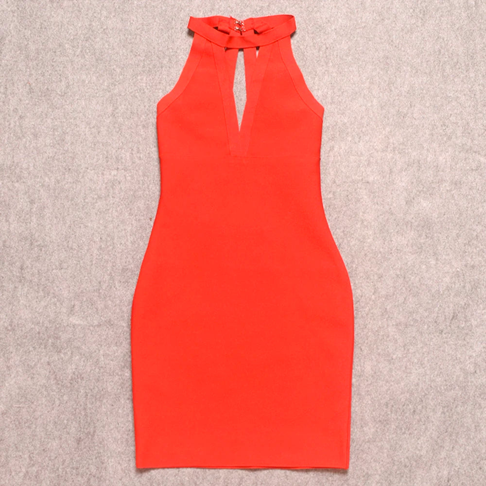HQBORY Sexy Hollow Halter Keyhole Bandage Dress Women Cut Out Mini Bodycon Dress Celebrity Club Party Red Slim Vestidos
