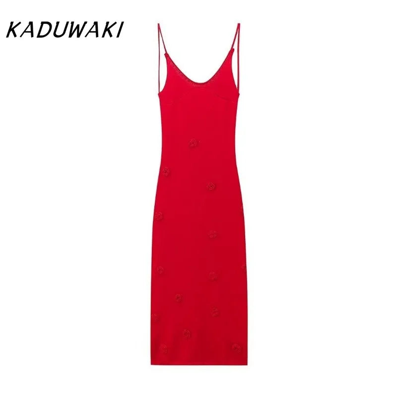 KADUWAKI Gothic Women's Knitted Embroidered Dresses Cute Sexy Long Gowns for Girls Beach Vacation Female's Slim Fitting Skirts