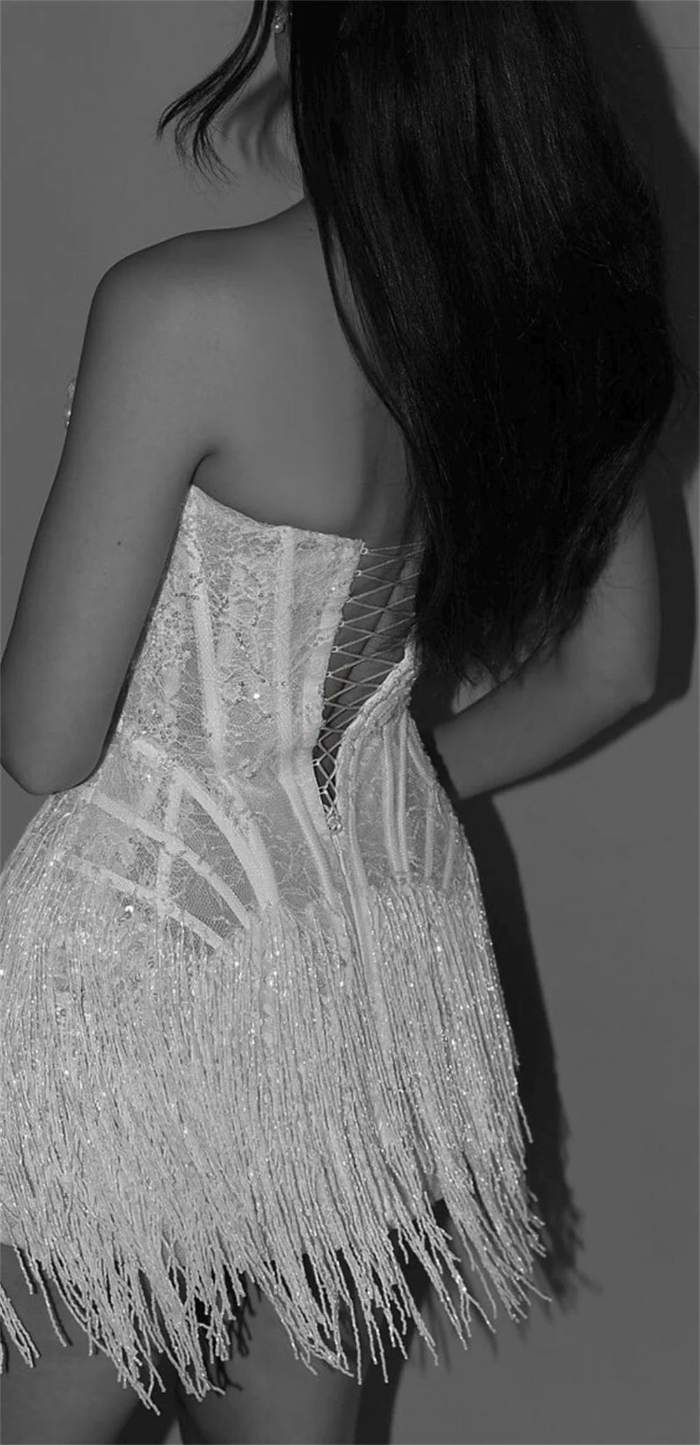 Customized White Lace Tassel Mini Wedding Dress Strapless Sheath vestidos de noiva Lace-up Back After Party Dresses 2026