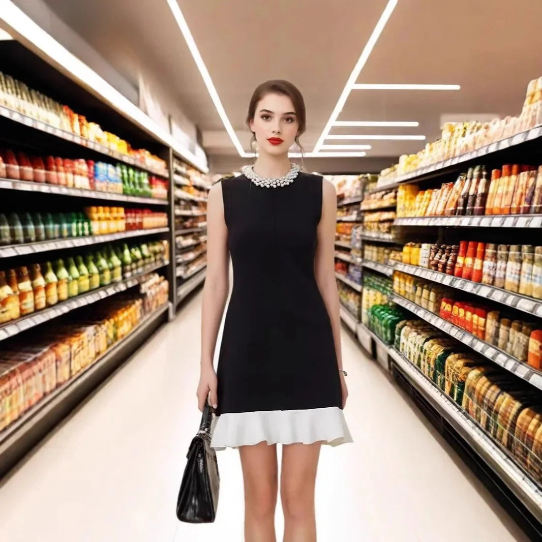 New Summer Sleeveless Knitted Black Dress Hepburn Style Women's Fashion Slimming Vest Dress Midi Length round Neckline