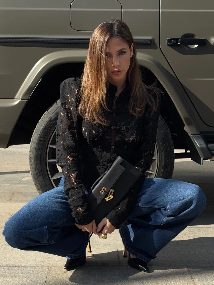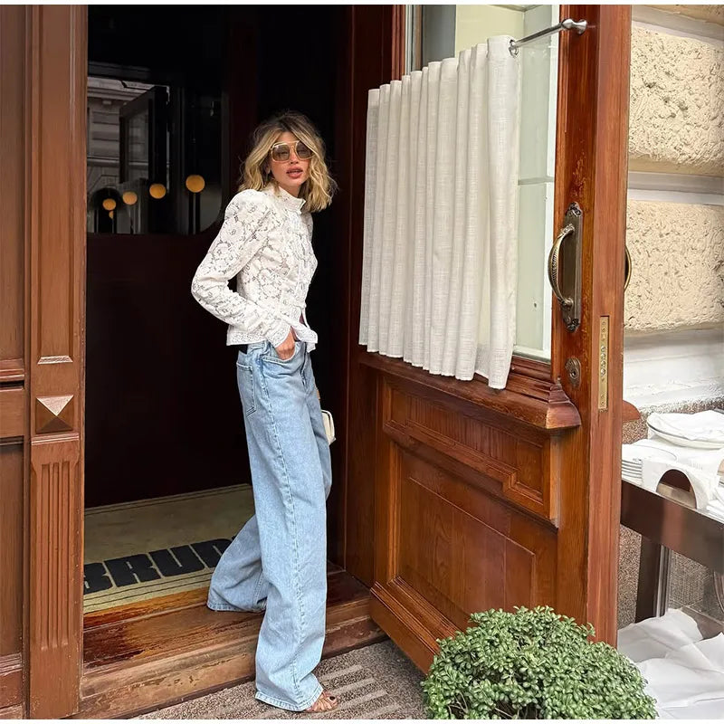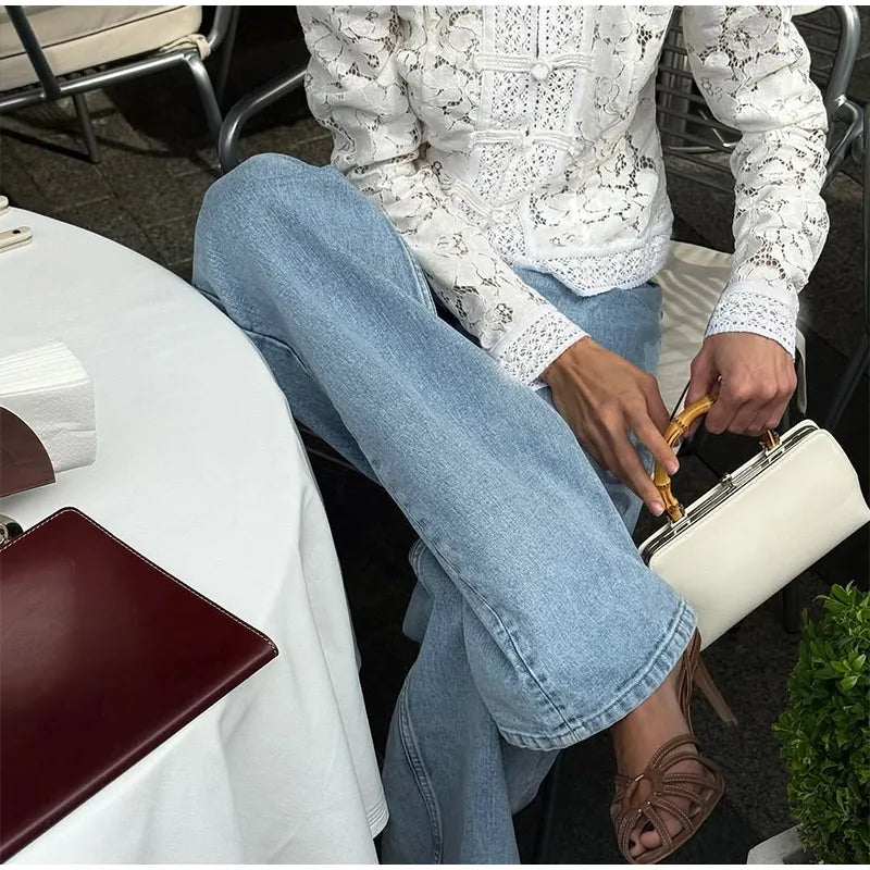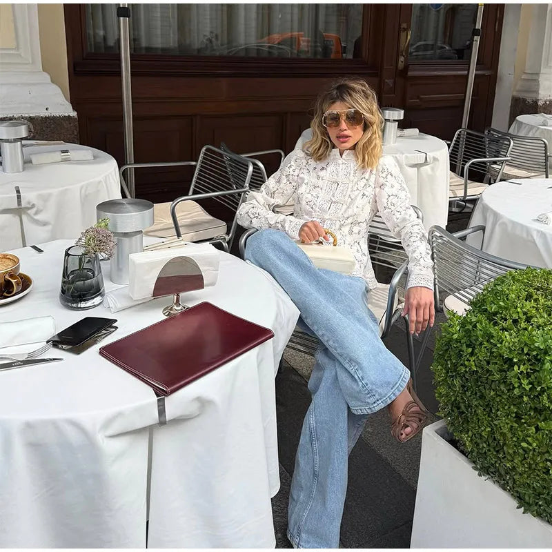 Hollow Shirt Women Chic Solid O Neck Long Sleeve Slim