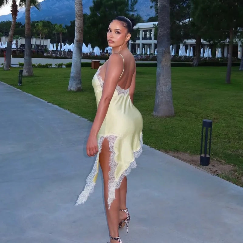 Sexy Hot Girl Camisole Top Lace V-neck Vest Dress Summer Sultry Chic Stylish Slim Fit Eye-catching Trendy Women's Inner Outfit