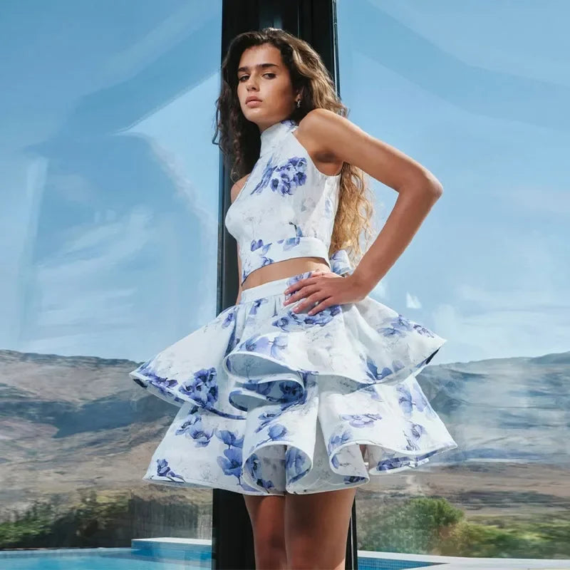 1 Sexy Print TOP & Ruffle Mini Skirt Set