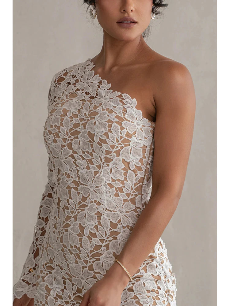Women White Long Sleeve One Shoulder Bodycon Long Dresses Party Club Evening Gowns