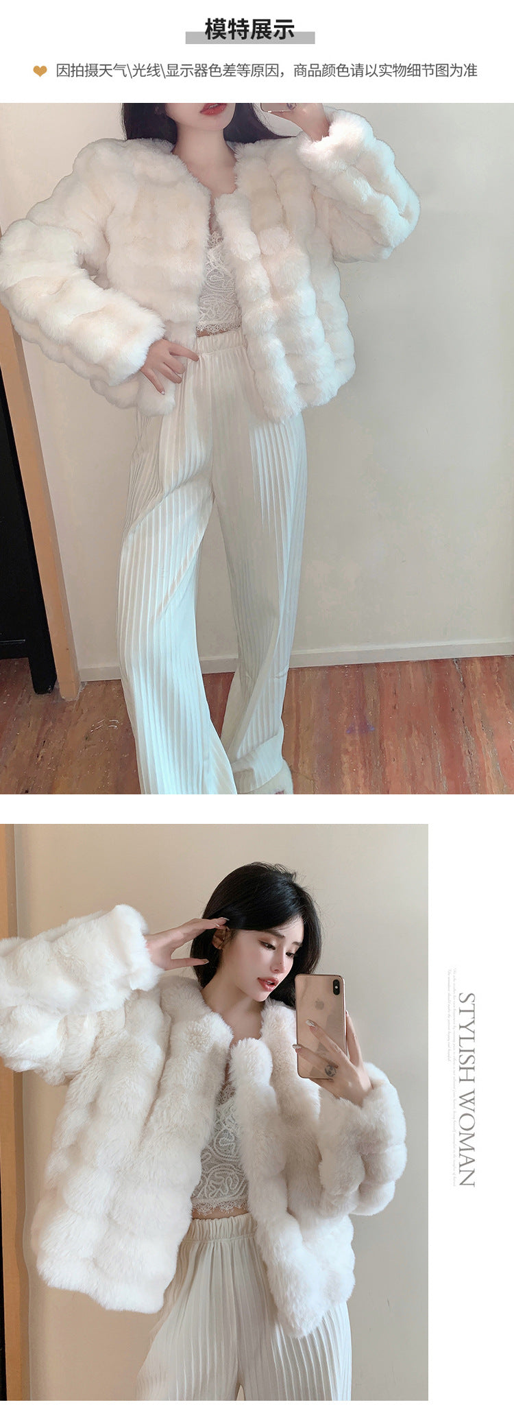 White Fur Coat for Women 2024 Autumn Winter Short Imitation Fur Plush Collarless Top Short Top Warm Luxury Cropped Fur Jacket