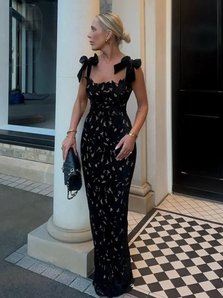 Sexy Hollow-Out Bodycon Club Party Long Dress for Beach Holiday